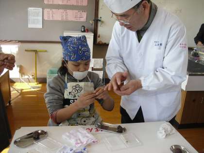 和菓子作りの名人から「ものづくりの魅力や作り方」を丁寧にご指導いただきました。