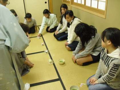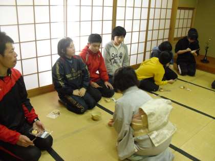自分が作った和菓子を「四等分して先に和菓子を食べ,その後,抹茶をいただくこと」また,「食べた後は,入れ物などは自分の後ろに置くこと」,「抹茶をいただくときに礼をきちんとすること」など,知らないことやこれまで体験してこなかったことを詳しく教えていただきました。