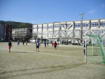 広い運動場で試合形式の練習に力いっぱいのプレーをしていました。