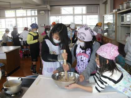 食べ物研究クラブでは,五平もち作りに挑戦しました。