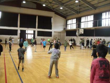 ドッジボールを低学年・中学年・高学年・PTA・教職員に分かれ,対戦しました。