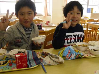 今週ランチルームの4年2組はよく「○○がしゃきしゃきしておいしかったです」「○○がとってもおいしかったです」と感想を聞かせてくれます。