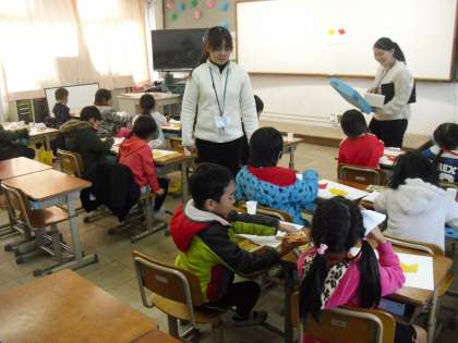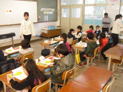1年生の教室では緊張しながらも,先生の話をよく聞き,歌や手遊び,折り紙や絵を描いたりして楽しみました。