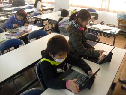 少しずつではありますが,放課後まなび教室でタブレット型PCを使用する児童がふえてきています。