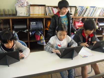 計算や漢字などのスキル学習のほか,調べ学習に使用する児童がふえてきています。