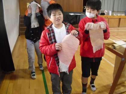 時間がたつにつれてどんどんできあがってくる手織のテーブルセンターを気にしながらも楽しんで手織体験をしていました。