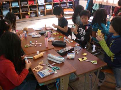 画用紙でうさぎやくまなどの立体的な動物を作り,お花を持たせて,大きな模造紙に貼りつけて完成です。
