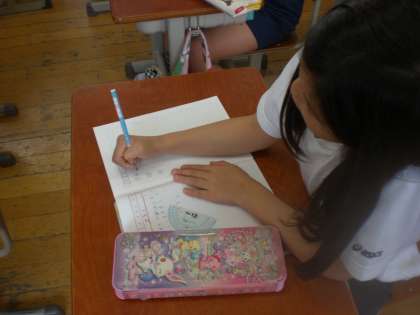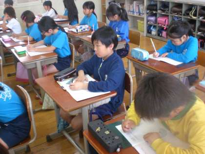 とても興味深く先生の話を聞いて,実際にはかる方法を自分のものにしようとしていました。