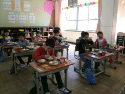 1年生は,金時豆を初めて食べる子が何人もいました。「食べてみたらおいしかった。」とおかわりをする子も続出です。