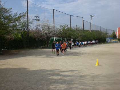 今日から朝陸上が始まりました。5・6年生が集まり,リーダーの紹介から始まり,みんなであいさつを行い,ランニングから始まりました。
