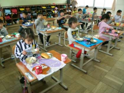 今日も1年生は元気いっぱい。4時間目に栄養教諭の北山先生から「牛乳のパワー大発見」というお話を聞いて,「ちゃんと牛乳飲むよ」「苦手だけどがんばるよ」と決意も新たに,給食時間をむかえ,いつも以上にがんばって飲んでいました。