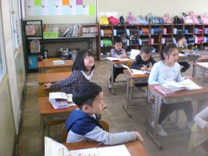 声の大きさや表情,読む早さや動きなどを,担任の先生と一緒に考えました。