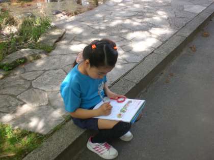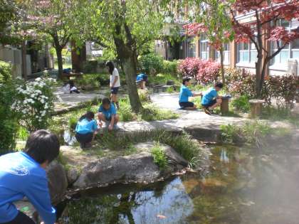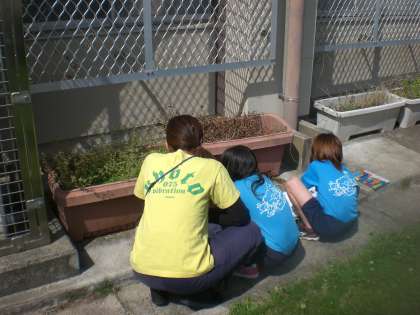 昨日の続きで,春の生き物を4年生が学校の中を探していました。
