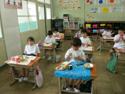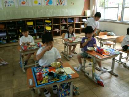 手作りルウのカレーは,けっこう本格的な味なので1年生にはちょっぴり辛いようです。
