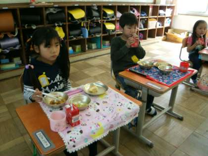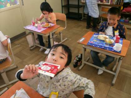 今日は,牛乳の苦手な子が「全部飲めた!」ととても嬉しそうでした。ハイタッチで喜びを分かち合いました。