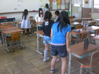 自分たちの教室を丁寧に掃除をしている3年生の様子です。