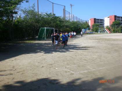 高学年の子ども達が,朝陸上に参加をして力いっぱい走っています。