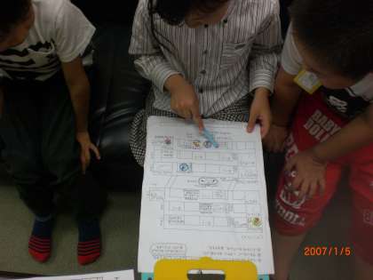 2年生は,部屋の説明をしたり,学校探検地図を見たりしながら,1年生を優しくリードしていました。
