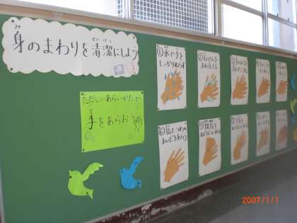 また,保健室前掲示板には,身のまわりを清潔にするために手の洗い方や洗う順番が掲示してあります。