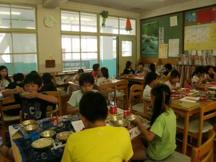 ランチルームの4年生も「とうふがやわらかいな〜」「じゃこがコリコリする」といいながら食べていました。