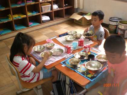 本日の給食の献立は,ひじきの煮付け・あじの竜田揚げ・牛乳・むぎご飯・豚汁でした。