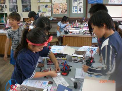 本日の4年生の理科では,モーターの回る向きを確認したり,簡易検流計を使って電流の向きを確かめたりしました。