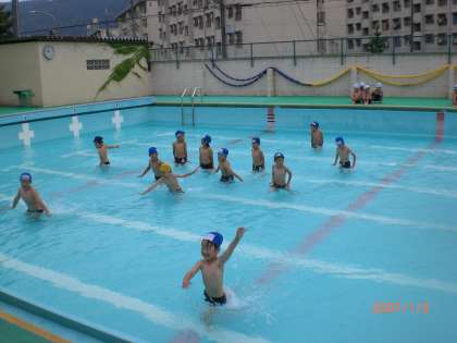 1・2年生共にルールをしっかり守りながら低水位のプール学習を楽しみました。