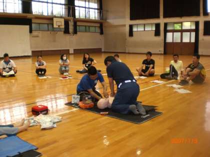 この時期に京都市の消防局の方にきていただき,救命講習をしていただきました。