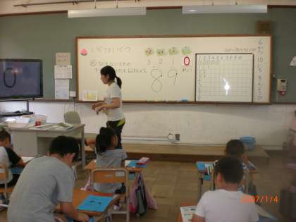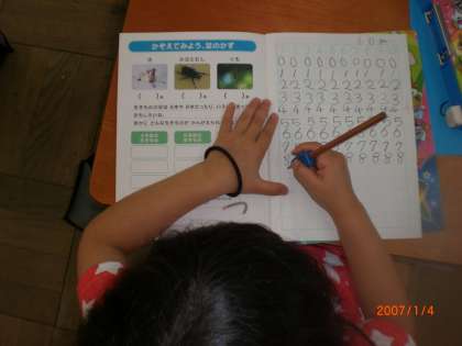 「いくつといくつ」を算数で学んでいます。今日は,何もない(0)ときの数字のかき方を覚えました。
