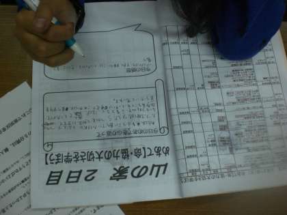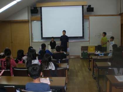 今日は命と協力することを目標に活動しましたが,子どもたちの振返りの中に「協力できてよかった」という反省や「明日は声を掛け合って活動を行いたい」という振返りをしました。