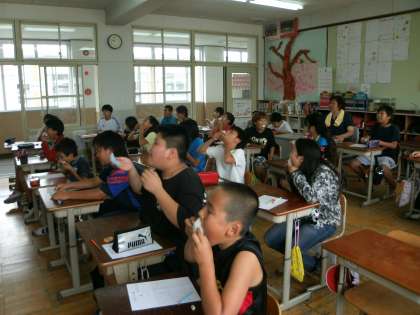 実験で100マス計算をしながら「ひと口おにぎり」を食べる前と食べた後でどうなるか結果を比べました。その結果は、もちろん「ひと口おにぎり」を食べた方が結果がよかったです。ほとんどの人が2回目、「ひと口おにぎり」を食べてからの方が100マス計算がたくさんできたのです。ひと口でもよい結果なのだから、しっかり食べたらもっとしっかり勉強に集中できるねと教えていただきました。
