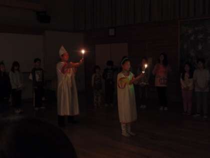 火の神様と火の子たちがキャンドルに点火してキャンドルファイヤーが始まりました。