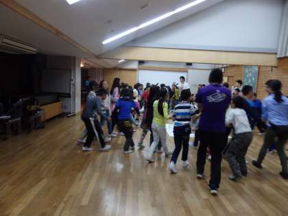 係の子どもたちの合図によって,楽しいダンスが始まりました。