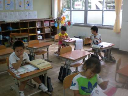 夏休み中も朝から学習をしている1年生です。