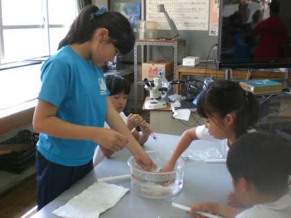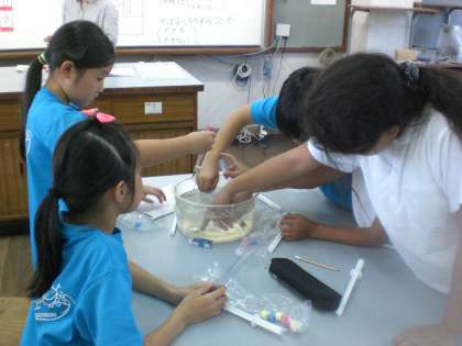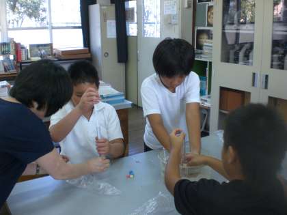 グループでまわりのお友だちの様子を見ながら,実験を行いました。