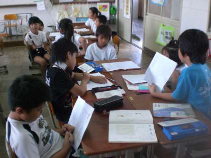 それぞれのグループでは,1年生にわかりやすく伝わるようにするにはどうすればいいのか,相談をしながら学習していました。