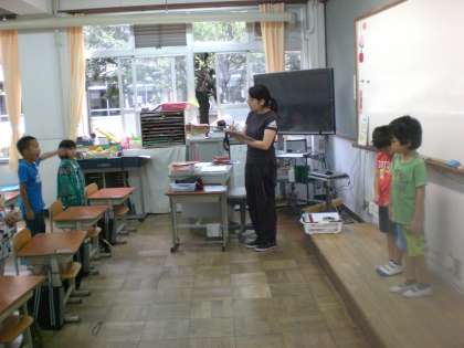 健康観察をしました。とても大きな声で「元気です」という子ども達です。