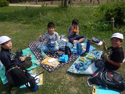 京都駅を後に梅小路公園へ行きました。お待ちかねのお昼のお弁当です。