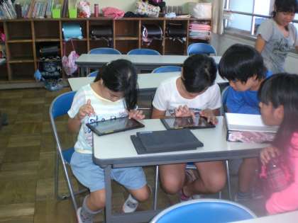 まなび教室での課題終了後には,タブレットを使って調べ学習をしたり,思考ゲームを楽しんだりしている子ども達もいました。
