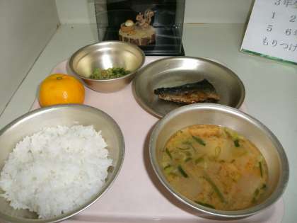 あゆみ学級では「ブロッコリーがシャキシャキしてた」「みかんのにおいが甘くてとろけそうなにおい」「九条ネギがシャキシャキしました」「にしんの煮つけが少し甘いにおいがしました」とおいしさをたくさんみつけながら食べていました。