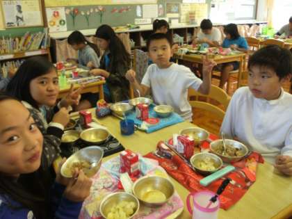 今日の献立は麦ごはん・牛乳・ハッシュドビーフ・ジャーマンポテト・りんごゼリーです。ハッシュドビーフは手作りルウのコクがあってごはんともよく合います。ランチルームの5年生もおかわりに長蛇の列ができていました。