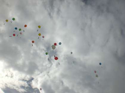 そして,「とべとべ」の歌に合わせて願いを書いた風船をみんなで飛ばしました。