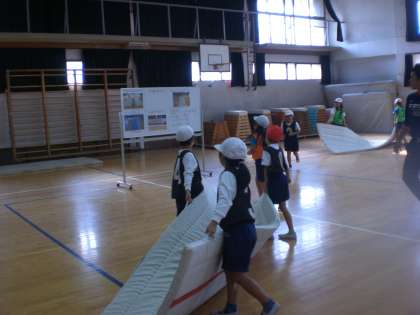 2年生の「マットあそび」です。マットの場づくりの準備から子ども達みんなで積極的に活動しています。見ていてとても気持ちがいいです。
