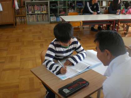 かけ算の筆算では,黒板にでてしっかり答えていました。