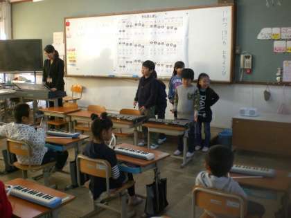 「いろいろな音をたのしもう」を学習しました。今日は,「きらきらぼし」をグループに分かれて演奏しました。