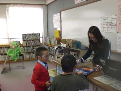 1年生の子ども達は,図書館で本を借りては読んでいます。
