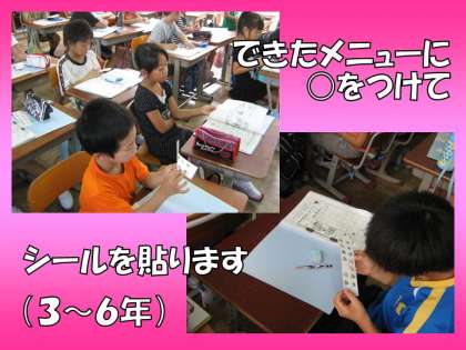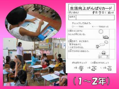 1〜2年生は「生活向上がんばりカード」,3〜6年生は,自分で選んだ「生活向上メニュー」をします。