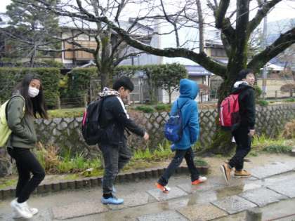 本日,6年生は雪の舞い散る中,京都にある世界文化遺産のお寺や神社について,実際に自分の目で見て肌で感じて学習する活動を行いました。