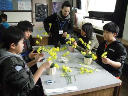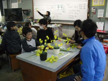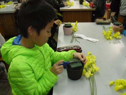 本日,6年生は,フラワーアレンジメント ファン(扇型)の学習をしました。