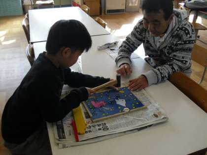 丁寧にくぎ打ちをしていました。少しずつできあがってきています。とても楽しそうにくぎ打ちをしていました。